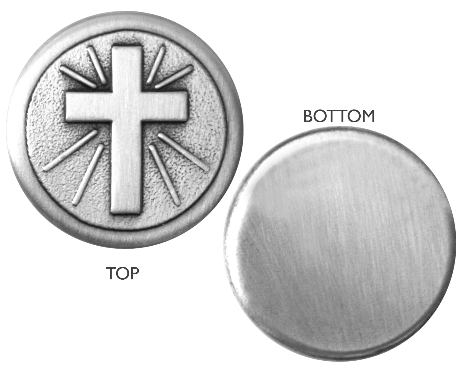 Embossed Cross is on the top of the lid and the bottom of the box is plain. Our hand-stamped brass rosary box is 7/8" wide x 5/8" high.