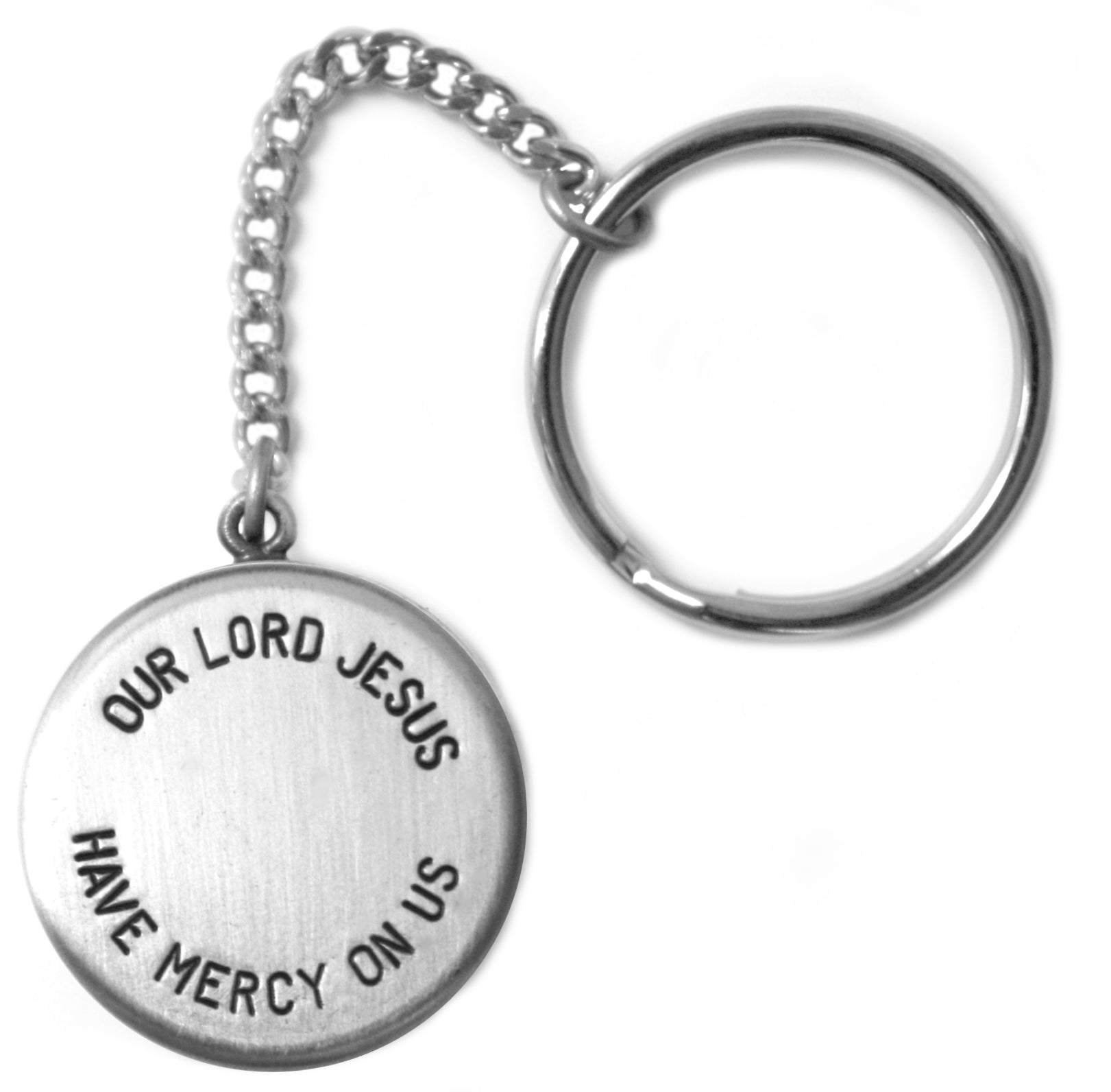 Embossed Christ head with thorns is on the top of the lid and "Our Lord Jesus Have Mercy On US" is inscribed on the bottom of of the box.