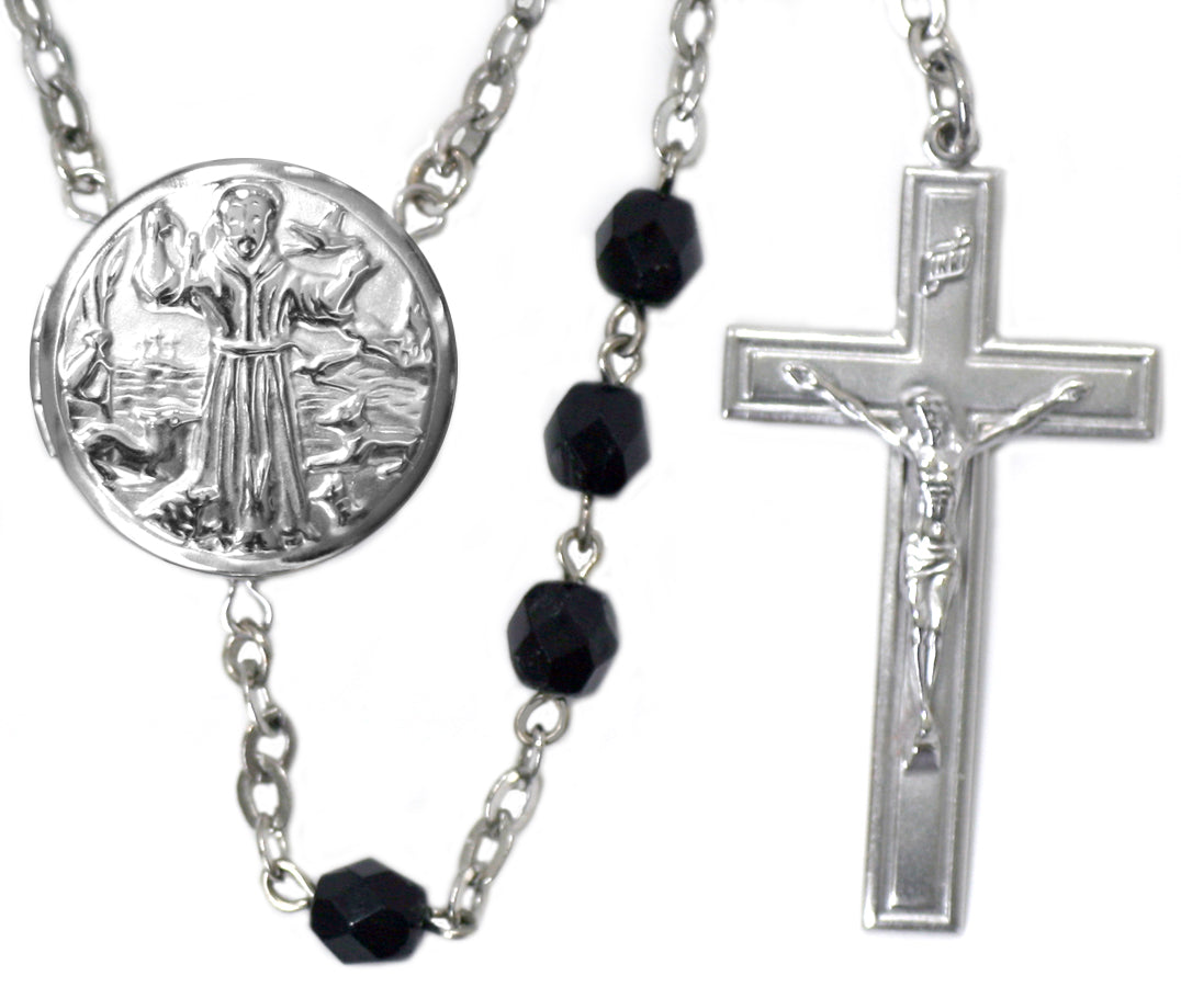 Hand crafted embossed Saint Francis locket center rosary beads...keep someone in your thoughts and prayers.