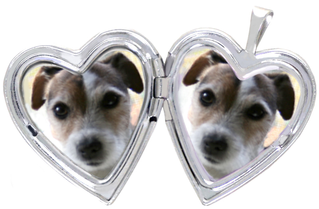 This polished sterling silver Forever in My Heart pet locket with paw print holds two photos of your bestie.